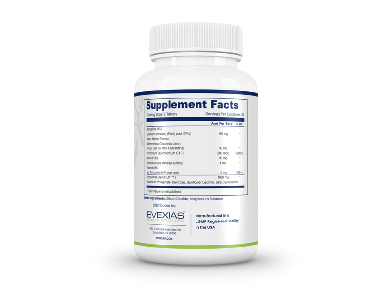 Berberine LPT by EVEXIAS Health Solutions Nutraceuticals is an innovative liposomal chewable tablet (LPT) that delivers highly bioavailable berberine alongside complementary nutraceuticals to optimize blood sugar regulation, homocysteine metabolism, cardiovascular function, and the body's inflammatory response. Featuring a small-molecule liposomal delivery system, this formula dramatically enhances nutrient absorption and efficacy, establishing it as one of the most effective tools for managing insulin resistance, hyperlipidemia, and overall cardiometabolic health. Each serving combines berberine, bitter melon, PQQ, vitamin B6, chromium, and vanadium to address the root causes of metabolic dysfunction, including poor glucose control, high cholesterol, hypertension, and inflammation.