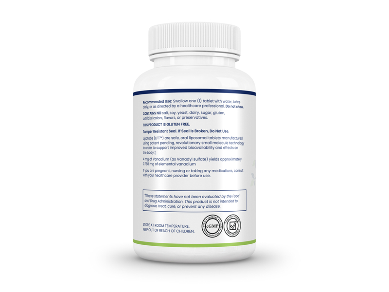 • Vanadium (as Vanadyl Sulfate, liposomal): 2 mg