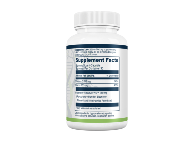 - Bioenergy RiaGev®-WS™: 750 mg, a proprietary blend of Bioenergy Ribose® and Nicotinamide Ascorbate.