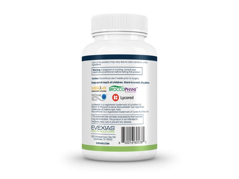 Phyto Defense by EVEXIAS Health Solutions is a comprehensive phytochemical blend that leverages the synergistic power of clinically validated plant extracts to protect the body against oxidative stress, support detoxification, and promote a healthy inflammation response. This formula integrates sulforaphane-rich broccoli sprouts, green tea extract, turmeric (Meriva®), pomegranate, quercetin, resveratrol, and natural lycopene to deliver multi-system support targeting the immune system, liver, metabolic health, and cellular aging. Designed to be a botanical companion to any multivitamin or anti-aging protocol, Phyto Defense empowers the body’s endogenous detox pathways, fortifies antioxidant capacity, and supports optimal immune regulation.