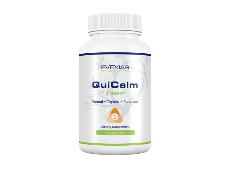 QuiCalm is a professional grade adaptogenic blend formulated by EVEXIAS Health Solutions to help manage the physical and emotional effects of chronic stress. This comprehensive formula combines three potent, research-backed ingredients, Relora®, Holy Basil, and L-Theanine (SunTheanine®), to naturally support healthy cortisol levels, promote emotional well-being, reduce stress-induced food cravings, and curb the inflammation associated with stress overload.