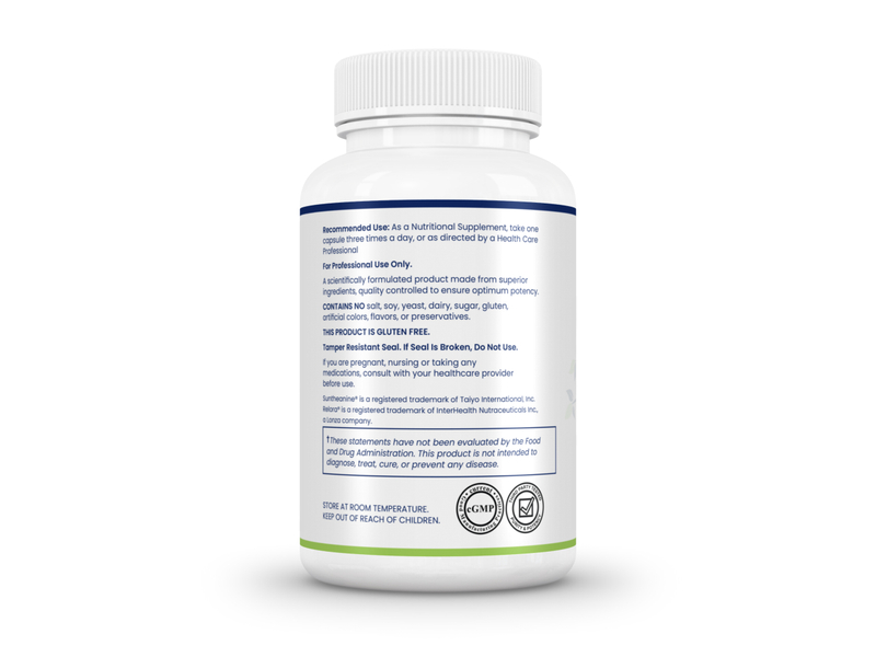 - L-Theanine (as SunTheanine®) (300 mg): A naturally occurring amino acid from green tea known for promoting a relaxed but alert mental state and balancing neurotransmitters like dopamine and serotonin