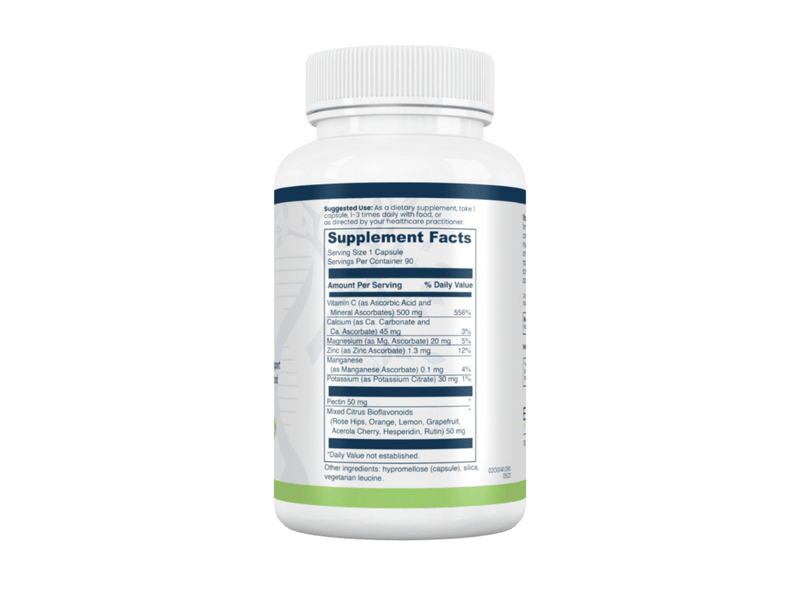 Vita C 500 is a highly bioavailable, buffered ascorbate formula designed to deliver potent immune, antioxidant, and connective tissue support, without the gastric discomfort often associated with traditional ascorbic acid supplements. This advanced formula combines 500 mg of Vitamin C with supportive minerals and bioflavonoid cofactors to amplify absorption, reduce oxidative stress, and strengthen collagen synthesis. More than just a basic vitamin, Vita C 500 helps to protect cellular integrity, modulate inflammation, and maintain resilience during cold, flu, or infection seasons. It is also a critical nutrient for skin, joint, and vascular health, and is gentle enough for daily use.